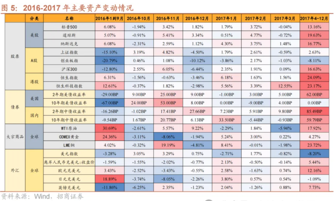 據(jù)招商證券追念的上一輪特朗普交易圖粗略看出,2016年1到9月,黃金確乎因為特朗普交易在高潮,但而后發(fā)揚得就不那么好了,在主要鈔票里算差的。